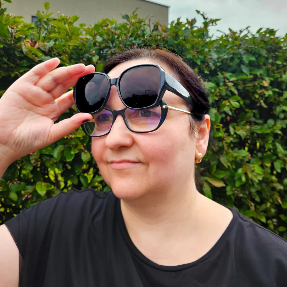 I was a little hesitant... afraid they'd be too big, not elegant. But honestly? They're super pretty, stay up well, and I wear them all the time in the car. No more having to juggle two pairs, it's a real relief.